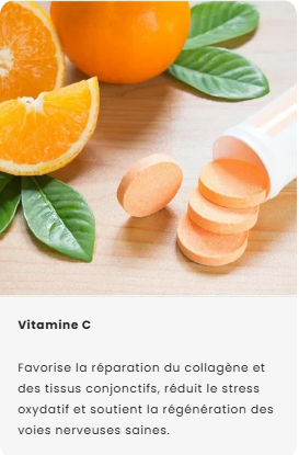 NervoRegénix™ associe des ingrédients actifs d’origine naturelle, sélectionnés pour leur rôle reconnu dans le soutien de la santé des nerfs et du système nerveux.