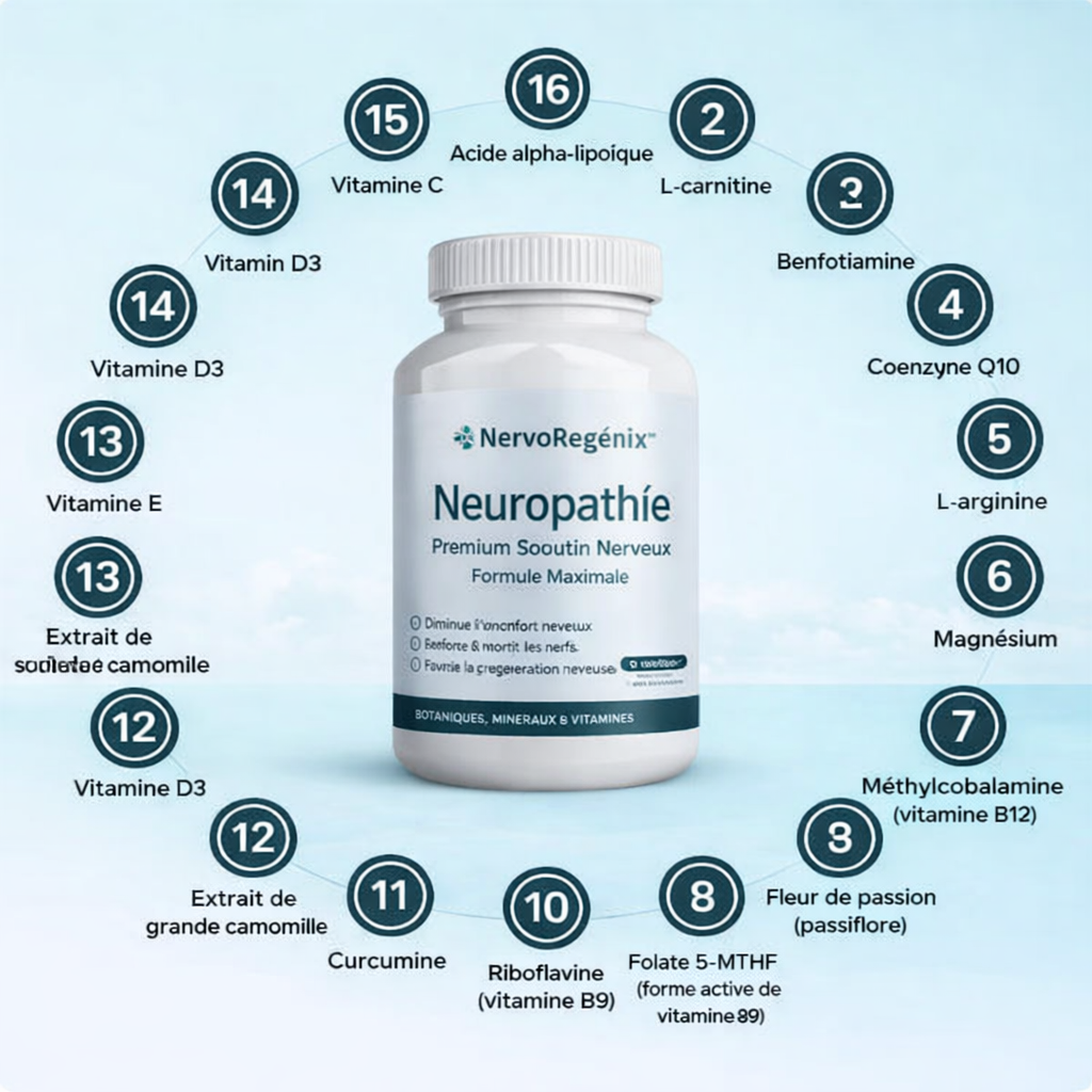 Vivre avec des douleurs brûlantes, des picotements et des engourdissements peut être extrêmement handicapant. C'est pourquoi des milliers de personnes font aujourd'hui confiance à NervoRegénix™, une formule avancée conçue pour soutenir naturellement la santé des nerfs lorsque les autres solutions n'ont pas apporté les résultats attendus.